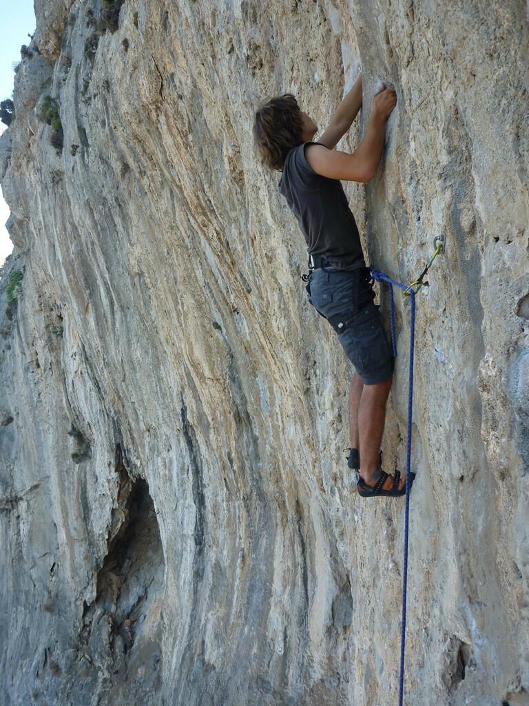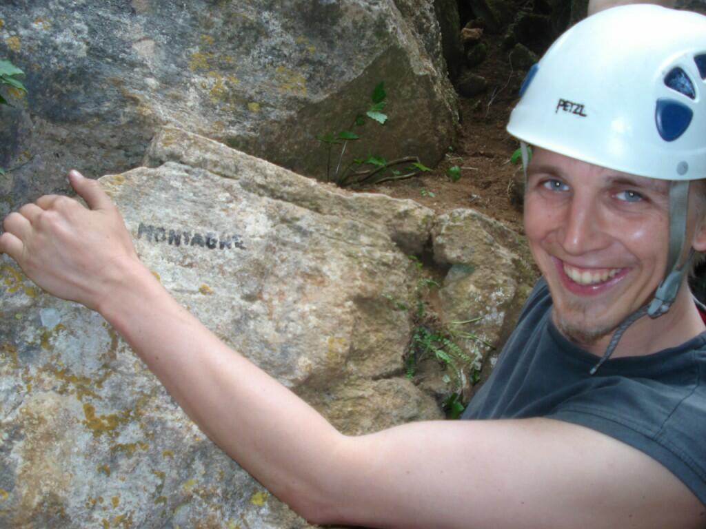 Sur l'arête de la voie normale ; le brouillard est bien présent en face nord